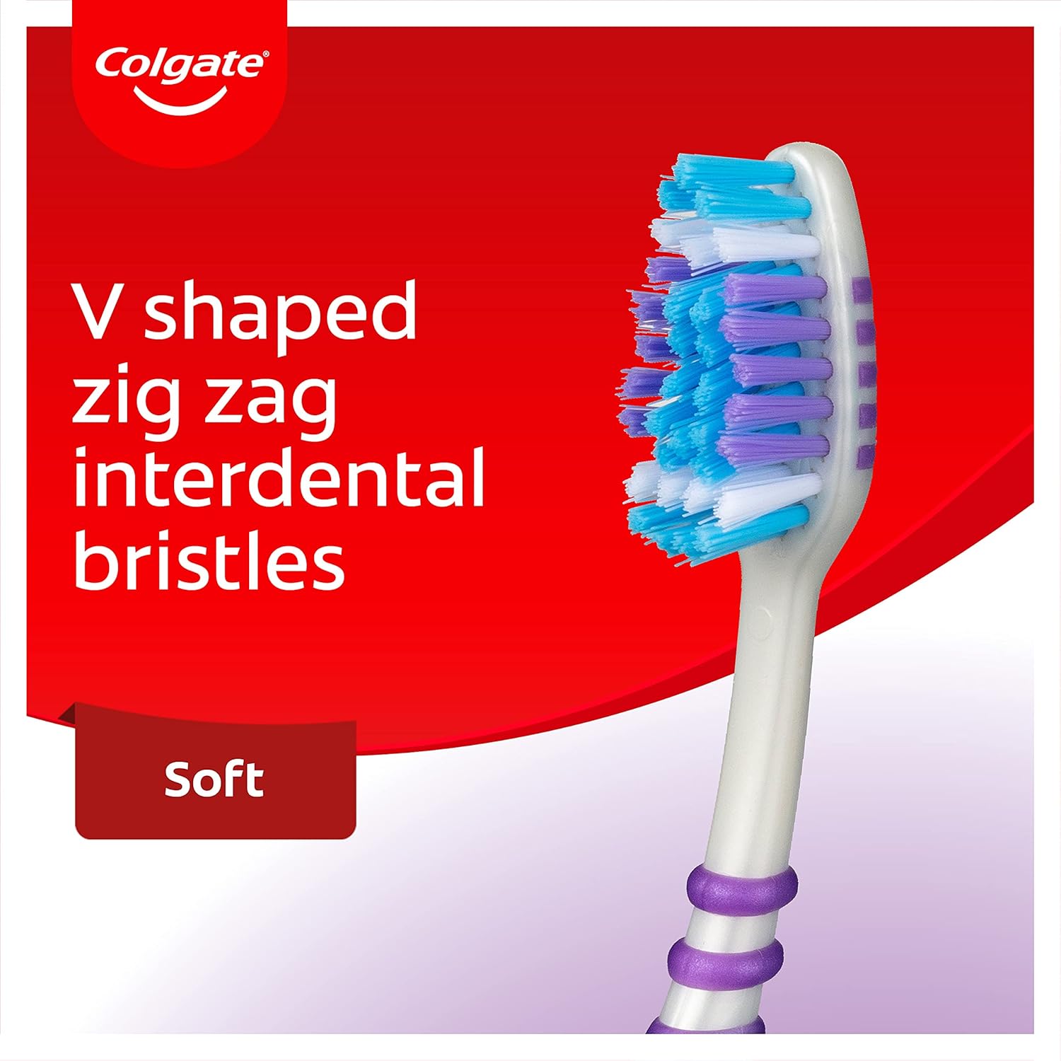 Colgate zigzag deep clean soft manual toothbrush is designed with v shaped cross bristles to reach deep between teeth for an effective clean.